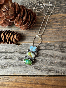 Triple Stone Turquoise Pendant Necklace - rustic, oxidized sterling silver